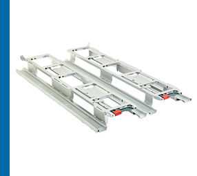 | Spingere i carrelli all'interno delle guide | Dettaglio pulsanti | Premere i pulsanti per bloccare / sbloccare i dolly | |